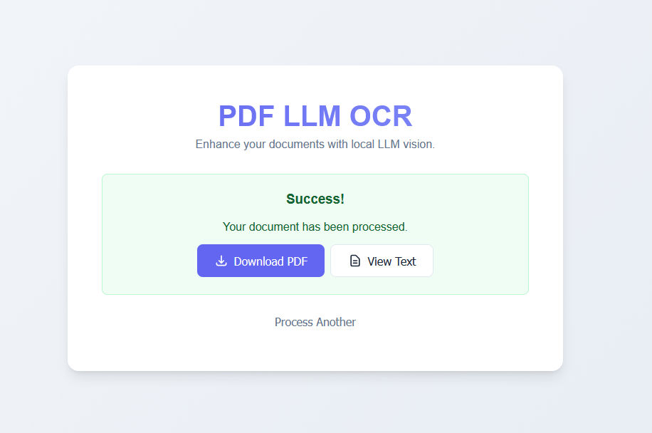 - Local LLM (OlmOCR): Human-like reading comprehension